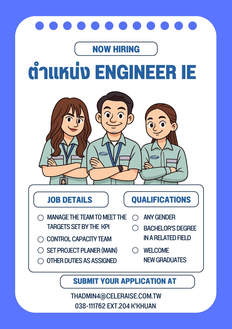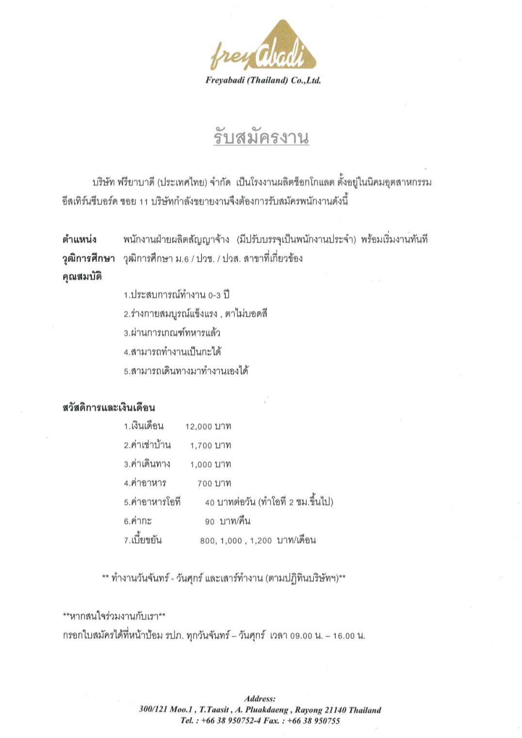 สนใจติดต่อฝ่ายบุคคล โทร (+66)38-656580-1 ต่อ 101