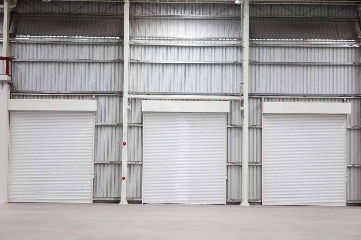 倉庫 - 磚混牆體刷漿噴漆,金屬鋼板及防鳥網和金屬百葉窗