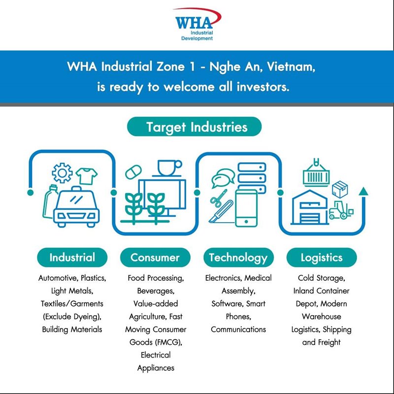 The first phase of WHA Industrial Zone 1 – Nghe An covering 897 rai (143.5 hectares) is ready to welcome all investors to invest in the following industries: