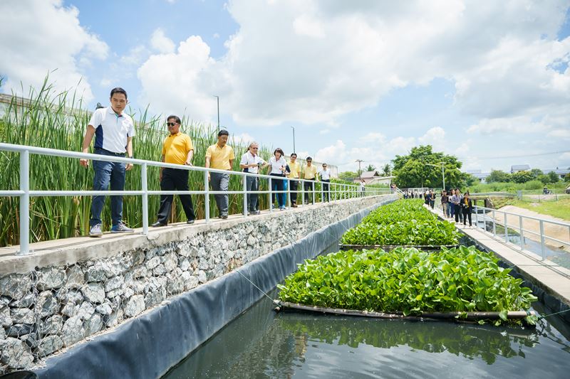 Bangkok, May 24, 2019 – WHA Corporation PCL (WHA Group) today announced the completion and delivery of a wastewater management and treatment facility to the Pluak Daeng Sub-district Administrative Organization in Rayong Province. The new facility, located close to Eastern Seaboard Industrial Estate (Rayong) (ESIE) in Pluak Daeng, has a capacity of 400 cubic meters per day, consisting of a Constructed Wetland that involves a natural technology using plants and microorganisms. The new wastewater management and treatment system was first inspired by the efforts and projects of H.M. King Bhumibol Adulyadej The Great to treat wastewater biologically. It was developed in line with WHA’s CSR initiative, Clean Water for Planet, to improve water quality. The objective was also to raise awareness among customers and community on the importance of implementing systematic wastewater management and ensure access to clean and safe water.