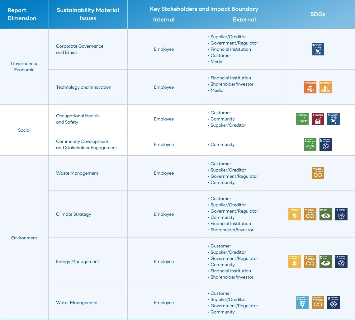 WHA Group conducts annual assessments and identification of material sustainability topics to ensure that the issues presented in the report align with the organization’s operations,stakeholder expectations, and the current economic, social, and environmental context.