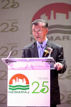 Mr. Chavalit Sethameteekul, Chairman of the Board of Directors, gives a welcome speech in the 25th anniversary celebration of Hemaraj Land And Development Plc.