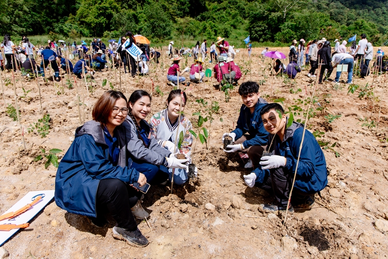 In total, 15,165 trees of various species were planted on five rai of land. These species include Lagerstroemia (Ta-Baek), Mahogany, Neem, Tabebuia (Khae-Na), Dipterocarpus alatus (Yang Na), Leucaena (Katin Thepa), Mulberry, Ma Maow (a local plant), and Ficus, among others.