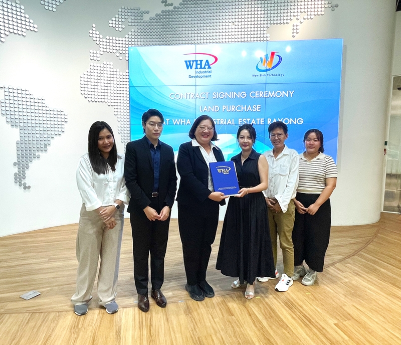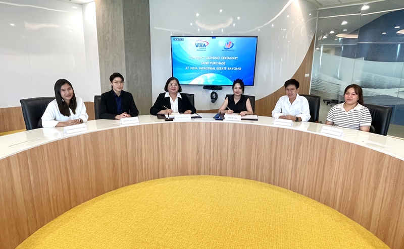 Photo: Ms. Ladda Rojanavilaivudh (Center-Left), Executive Vice President, Industrial Land and Building at WHA Industrial Development Public Company Limited (WHAID), and Ms. Shen Yu (Center-Right), Director of Won Sinh Technology (Thailand) Co., Ltd., during the land purchase agreement signing ceremony held at the WHA Tower.