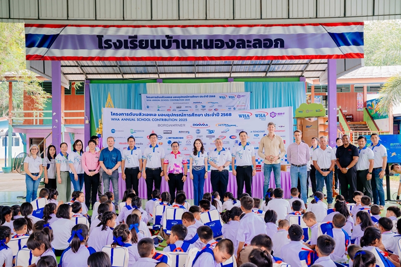 Rayong, June 30, 2025 – WHA Corporation Public Company Limited (WHA Group), Thailand’s leading developer of fully integrated logistics, industrial development, utilities and power, digital solutions, and WHA mobility, continues its commitment to social development through the "WHA Annual School Contribution Project" for the 27th consecutive year. This initiative aims to promote education and enhance the quality of life for children in communities surrounding its industrial estates.