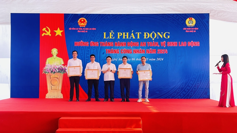 On May 6, the Council of Labor Safety and Health of Nghe An province, along with the Provincial Labor Confederation, organized the launch event to kickstart the implementation of the Action Month for Labor Safety and Health in 2024 within the Dong Nam Economic Zone of Nghe An province.