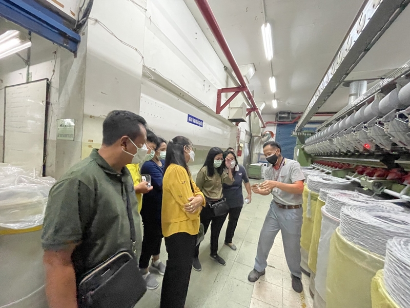 Visitors listen attentively to their host and guide who explains how agricultural waste is converted to organic fibers that are in demand from local and international buyers in search of high-quality materials. WHA Group, WHAUP and Tasit district representatives are shown some finished high-quality yarn and fiber used as raw materials by different industries.