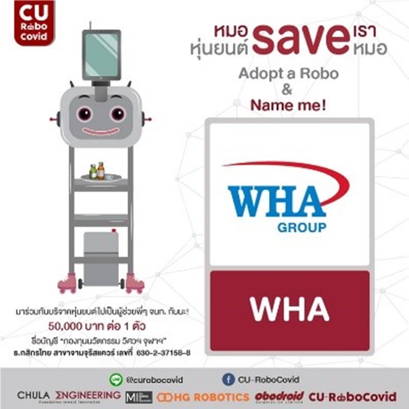 WHA Group also sponsored two “CU-RoboCovid”, created by the Faculty of Engineering, Chulalongkorn University. The “Pinto” robots, now used at hospitals nationwide, assist doctors and nurses in their task to detect and treat COVID-19 cases, while reducing the risk of infection. Other monetary donations were sent to communities to subsidize mobile temperature checkpoints, so villagers can be screened for fever and other COVID-19 symptoms.
