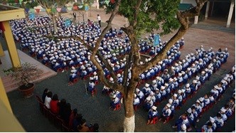 The flag-raising ceremony at the beginning of the week at Nghi Long primary school