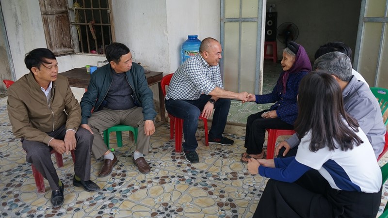 Mr. Nguyen Huu Duc (center), General Director of WHA Industrial Zone Nghe An JSC and the Nghi Thuan commune committee representatives, visited Mrs. Nguyen Thi Vinh in Nghi Thuạn commune