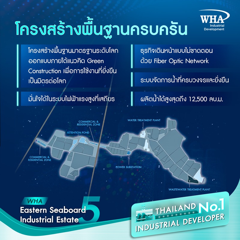 WHA ESIE 5 จึงเป็นนิคมอุตสาหกรรมเชิงนิเวศอัจฉริยะที่รวบรวมที่สุดของศักยภาพด้านทำเล โครงสร้างพื้นฐาน และนวัตกรรม เพื่อการลงทุนที่ยั่งยืนและอนาคตที่ดีกว่าเดิมสำหรับทุกคน​