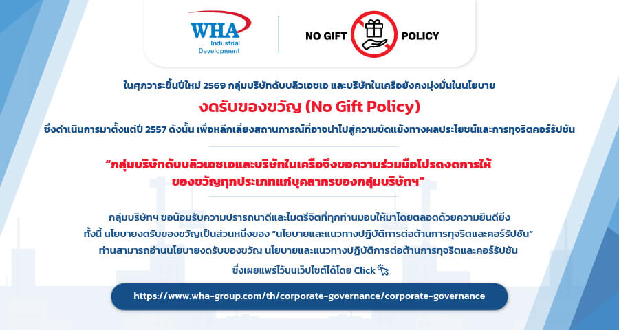 “ที่ WHA Industrial Development เราไม่เพียงแค่พัฒนาที่ดินให้กับลูกค้า แต่เรายังนำเสนอการบริการครบวงจรที่มุ่งเน้นการพัฒนา Smart Eco Industrial Estate ในการบริหารจัดการนิคมอุตสาหกรรม เพื่อตอบสนองความต้องการของธุรกิจ พร้อมขับเคลือนการเติบโตอย่างยั่งยืนในทุกมิติ”