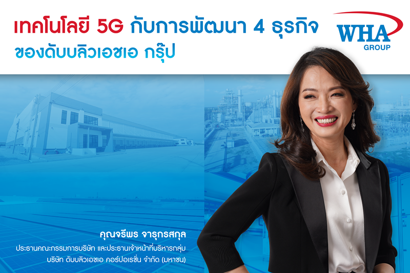 คุณจรีพร จารุกรสกุล ได้เน้นย้ำถึงโอกาสในการลงทุน ที่ใช้เทคโนโลยี 5G ขับเคลื่อนภาคธุรกิจของดับบลิวเอชเอ กรุ๊ป ทั้ง 4 ภาคส่วน โดยกล่าวว่า “WHA จะใช้เทคโนโลยี 5G ต่อยอดและพัฒนา 4 ภาคธุรกิจหลัก ด้วยระบบการบริหารจัดการอัจฉริยะ พร้อมรวบรวมข้อมูลเพื่อขยายสเกลสู่โมเดลธุรกิจใหม่ที่ยั่งยืน"