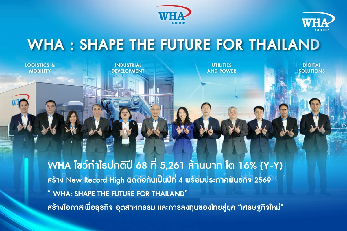 WHA โชว์กำไรปกติปี 68 ที่ 5,261 ล้านบาท โต 16% (Y-Y) สร้าง New Record High ติดต่อกันเป็นปีที่ 4 พร้อมประกาศพันธกิจ 2569 “ WHA: SHAPE THE FUTURE FOR THAILAND” สร้างโอกาสเพื่อธุรกิจ อุตสาหกรรม และการลงทุนของไทยสู่ยุค “เศรษฐกิจใหม่”