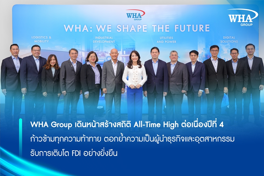 WHA Group เดินหน้าสร้างสถิติ All-Time High ต่อเนื่องปีที่ 4 ก้าวข้ามทุกความท้าทาย ตอกย้ำความเป็นผู้นำธุรกิจและอุตสาหกรรม รับการเติบโต FDI อย่างยั่งยืน
