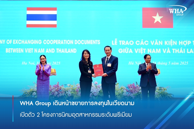 ฮานอย สาธารณรัฐสังคมนิยมเวียดนาม – 16 พฤษภาคม 2568 – นางสาวจรีพร จารุกรสกุล ประธานคณะกรรมการบริหาร และประธานเจ้าหน้าที่บริหาร กลุ่มบริษัท ดับบลิวเอชเอ คอร์ปอเรชั่น จำกัด (มหาชน) หรือ WHA Group เข้ารับเอกสารสำคัญสำหรับการขยายการลงทุนครั้งประวัติศาสตร์ในประเทศเวียดนาม ผ่าน 2 โครงการนิคมอุตสาหกรรมแห่งใหม่ในจังหวัดทัญฮว้า (Thanh Hoa) และจังหวัดฮึงเอียน (Hung Yen) ซึ่งตั้งอยู่ในทำเลยุทธศาสตร์ เพื่อตอบรับความต้องการที่เพิ่มขึ้นจากอุตสาหกรรมชั้นนำระดับโลก