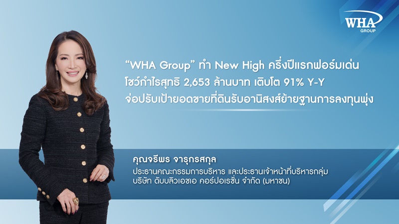 “WHA Group” ทำ New High ครึ่งปีแรกฟอร์มเด่น โชว์กำไรสุทธิ 2,653 ล้านบาท เติบโต 91% Y-Y จ่อปรับเป้ายอดขายที่ดินรับอานิสงส์ย้ายฐานการลงทุนพุ่ง