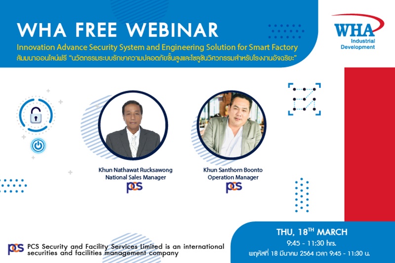 ดับบลิวเอชเอ กรุ๊ป จัดสัมมนาออนไลน์ในหัวข้อ “นวัตกรรมระบบ รักษาความปลอดภัยขั้นสูงและโซลูชันวิศวกรรมสำหรับโรงงานอัจฉริยะ