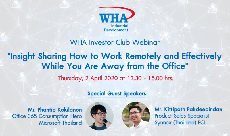 ดับบลิวเอชเอ อินดัสเตรียล ดีเวลลอปเมนท์ จัดสัมมนาออนไลน์ให้ลูกค้า ในหัวข้อ การทำงานทางไกลอย่างมีประสิทธิภาพ