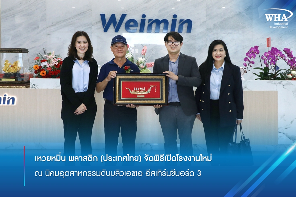 บริษัท ดับบลิวเอชเอ อินดัสเตรียล ดีเวลลอปเมนท์ (WHAID) ร่วมแสดงความยินดีกับ คุณซู หลง เหอ กรรมการผู้จัดการ บริษัท เหวยหมิ่น พลาสติก (ประเทศไทย) จำกัด ในโอกาสเปิดโรงงานแห่งใหม่อย่างเป็นทางการ ณ นิคมอุตสาหกรรมดับบลิวเอชเอ อีสเทิร์นซีบอร์ด 3 (WHA ESIE 3) โรงงานแห่งนี้เป็นฐานการผลิตที่ทันสมัยแห่งใหม่ของบริษัทในประเทศไทย ครอบคลุมพื้นที่กว่า 13,000 ตารางเมตร มุ่งเน้นการผลิตชิ้นส่วนพลาสติกขึ้นรูปสำหรับเครื่องมือช่างเพื่อตอบสนองความต้องการของตลาดทั้งในและต่างประเทศ โดยมีกระบวนการผลิตที่ครอบคลุมตั้งแต่การขึ้นรูป การประกอบ และการปั๊มผลิตภัณฑ์ การลงทุนครั้งนี้สะท้อนถึงความเชื่อมั่นในศักยภาพของอุตสาหกรรมไทย และเป็นก้าวสำคัญในการขยายตลาดของเหวยหมิ่น พลาสติกสู่ระดับสากล ซึ่งเรามีประสบการณ์ด้านการผลิตพลาสติกและแม่พิมพ์ มากกว่า 20 ปี และยังคงมุ่งมั่นผลิตผลิตภัณฑ์ ที่มีคุณภาพเพื่อรองรับลูกค้าต่อไป