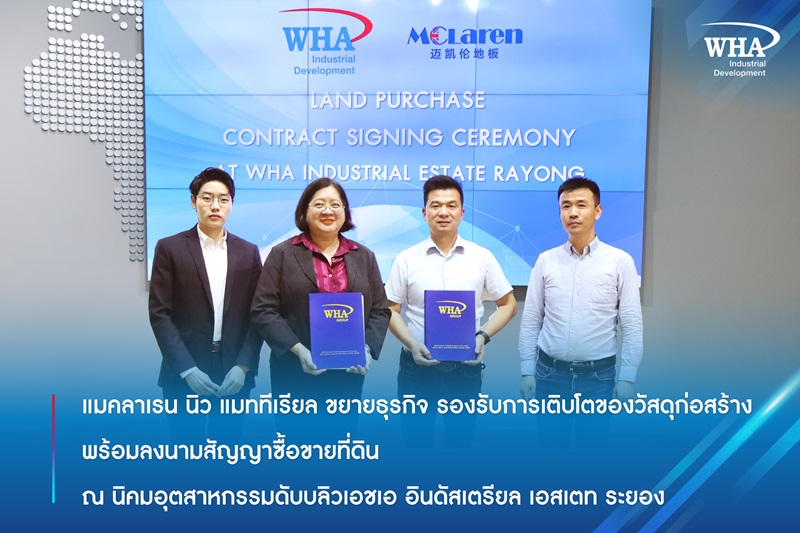 แมคลาเรน นิว แมททีเรียล ขยายธุรกิจ รองรับการเติบโตของวัสดุก่อสร้าง พร้อมลงนามสัญญาซื้อขายที่ดิน ณ นิคมอุตสาหกรรมดับบลิวเอชเอ อินดัสเตรียล เอสเตท ระยอง