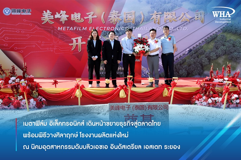 เมตาฟิล์ม อิเล็คทรอนิคส์ เดินหน้าขยายธุรกิจสู่ตลาดไทย พร้อมพิธีวางศิลาฤกษ์ โรงงานผลิตแห่งใหม่ ณ นิคมอุตสาหกรรมดับบลิวเอชเอ อินดัสเตรียล เอสเตท ระยอง