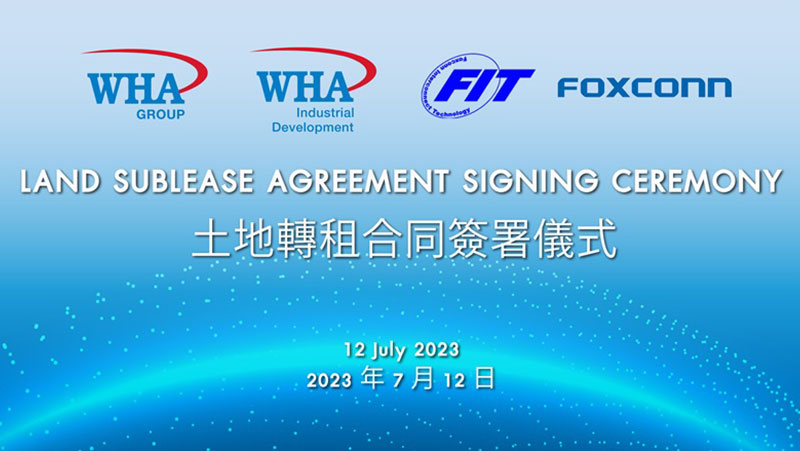 เหงะอาน/ 12 กรกฎาคม 2566 - ดับบลิวเอชเอ กรุ๊ป ผู้พัฒนานิคมอุตสาหกรรมชั้นนำในประเทศไทยและเวียดนาม ประกาศลงนามในสัญญาเช่าที่ดินระหว่าง บริษัท ดับบลิวเอชเอ อินดัสเตรียล โซน เหงะอาน จำกัด กับ บริษัท ฟู่ วิง อินเตอร์คอนเนค เทคโนโลยี (เหงะอาน) จำกัด (Fu Wing Interconnect Technology (Nghe An) Co., Ltd.) ในเครือบริษัท ฟ็อกซ์คอนน์ อินเตอร์คอนเนค เทคโนโลยี จำกัด หรือ FIT และหงไห่ เทคโนโลยี กรุ๊ป หรือ ฟ็อกซ์คอนน์ (Hon Hai Technology Group - Foxconn) ผู้ผลิตอุปกรณ์อิเล็กทรอนิกส์รายใหญ่ที่สุดของโลก